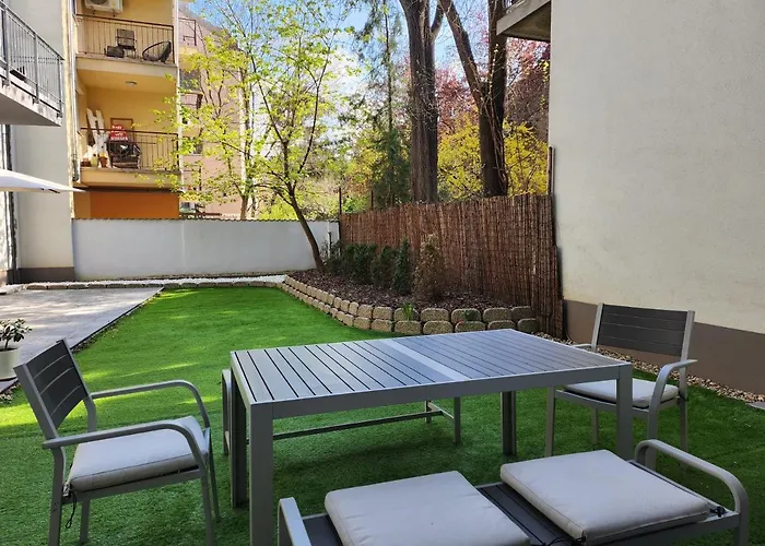 S18 "Garden In The City" Apartment Boedapest van 30 m² ligt in Boedapest binnen 3 km van het Kossuth tér en biedt een uitzicht op de tuin. Dit appartement biedt moderne faciliteiten, zoals draadloos internet en benodigdheden zoals parkeerplaatsen voor autoreizigers.